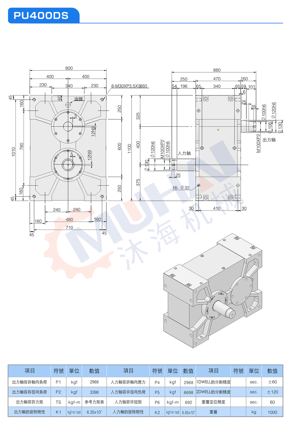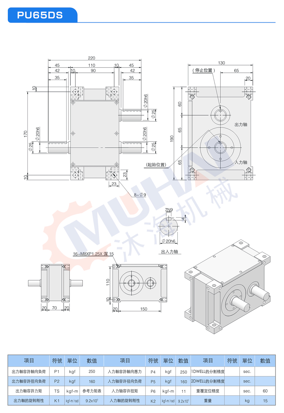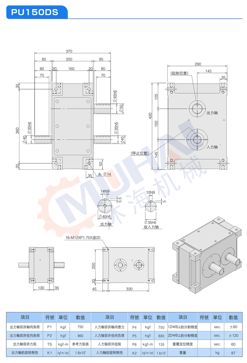 內含二片固定在入力軸的板型凸輪以及隨凸輪傳動的滾子轉塔出力軸,此分割器有平行共軛凸輪的機械設計,藉由接合于入力軸上的二片板形凸輪轉動而傳動滾子轉塔旋轉而達成出力軸分度的功能,最適合供給節距較大的輸送帶傳動軸,或用于停留時間較長的間歇分度。另有三片式重負荷型式,更適合一些快速且長節距的輸送,并且停留時間亦比二片式長。