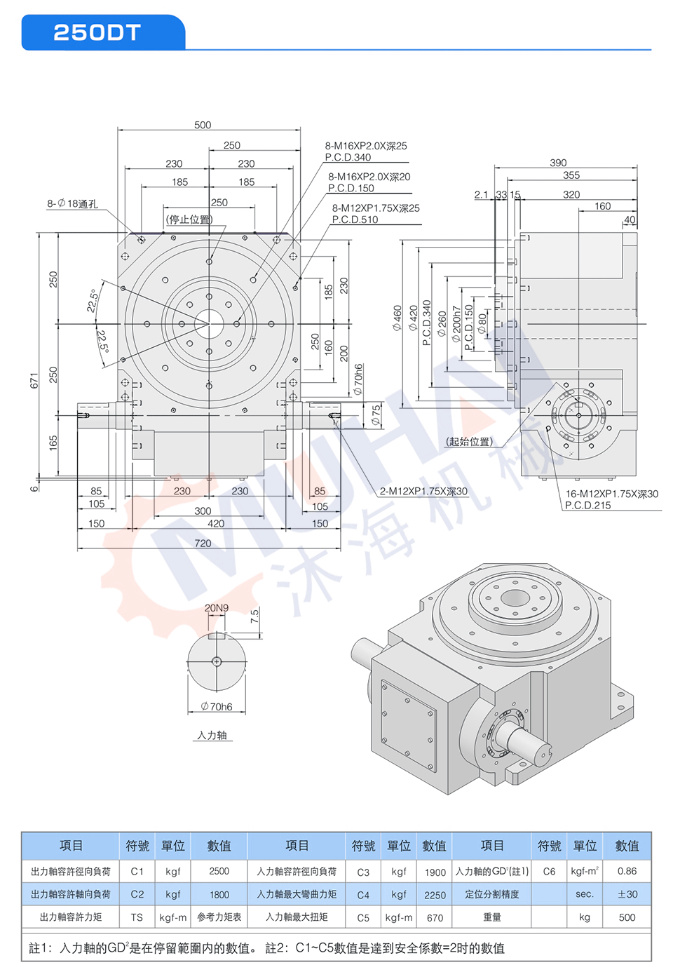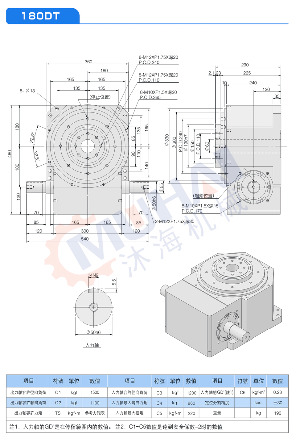 此系列機種之尺寸設計特性輿凸緣型功能相似,于驅動運轉上可承受超大軸向負載及垂直徑向壓力,在輸出端有一凸起固定盤面及大孔徑空心軸,可搭配設置動態、靜態自動化周邊設備,可將動力源之電、油、氣等管路置于空心孔內,此系列機種廣泛應用重負載、直結自動化設備之各類種機構及產業機械等,作同步自動化間歇驅動。